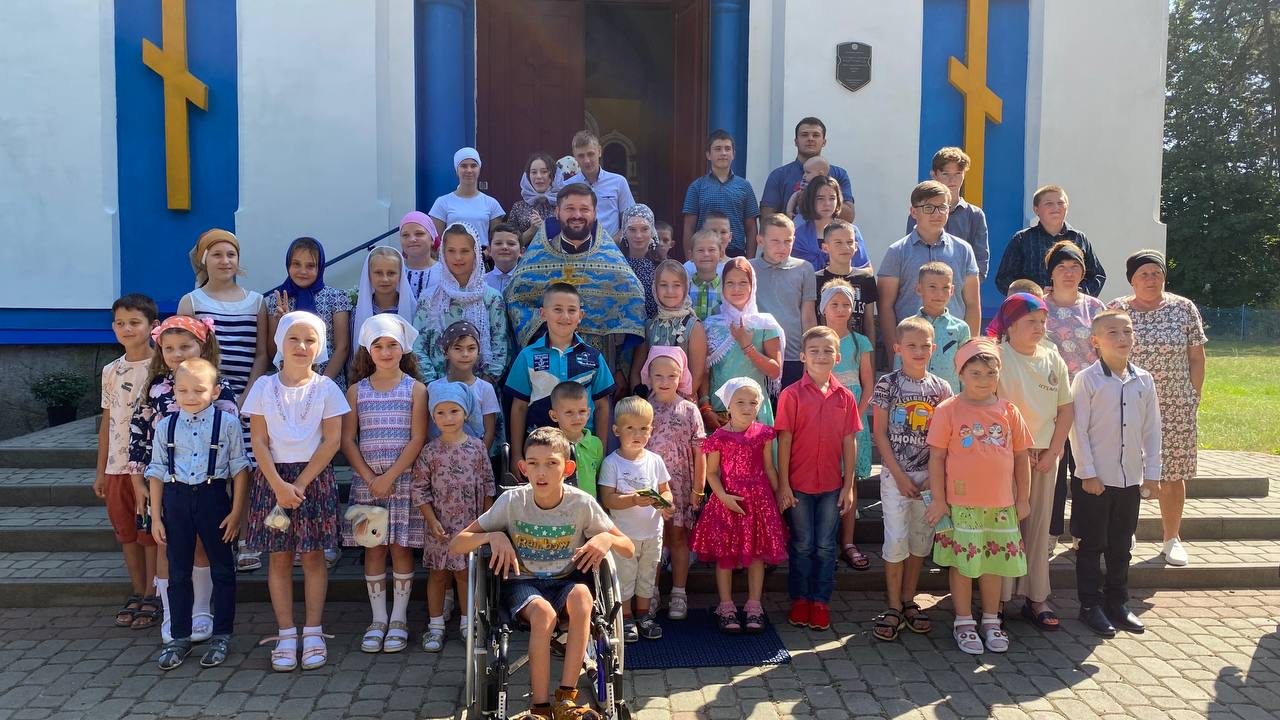В праздничный день Успения Божией Матери юные прихожане и их родители причастились Святых Христовых Таинств, а затем все вместе молились за молебном перед началом учебного года.