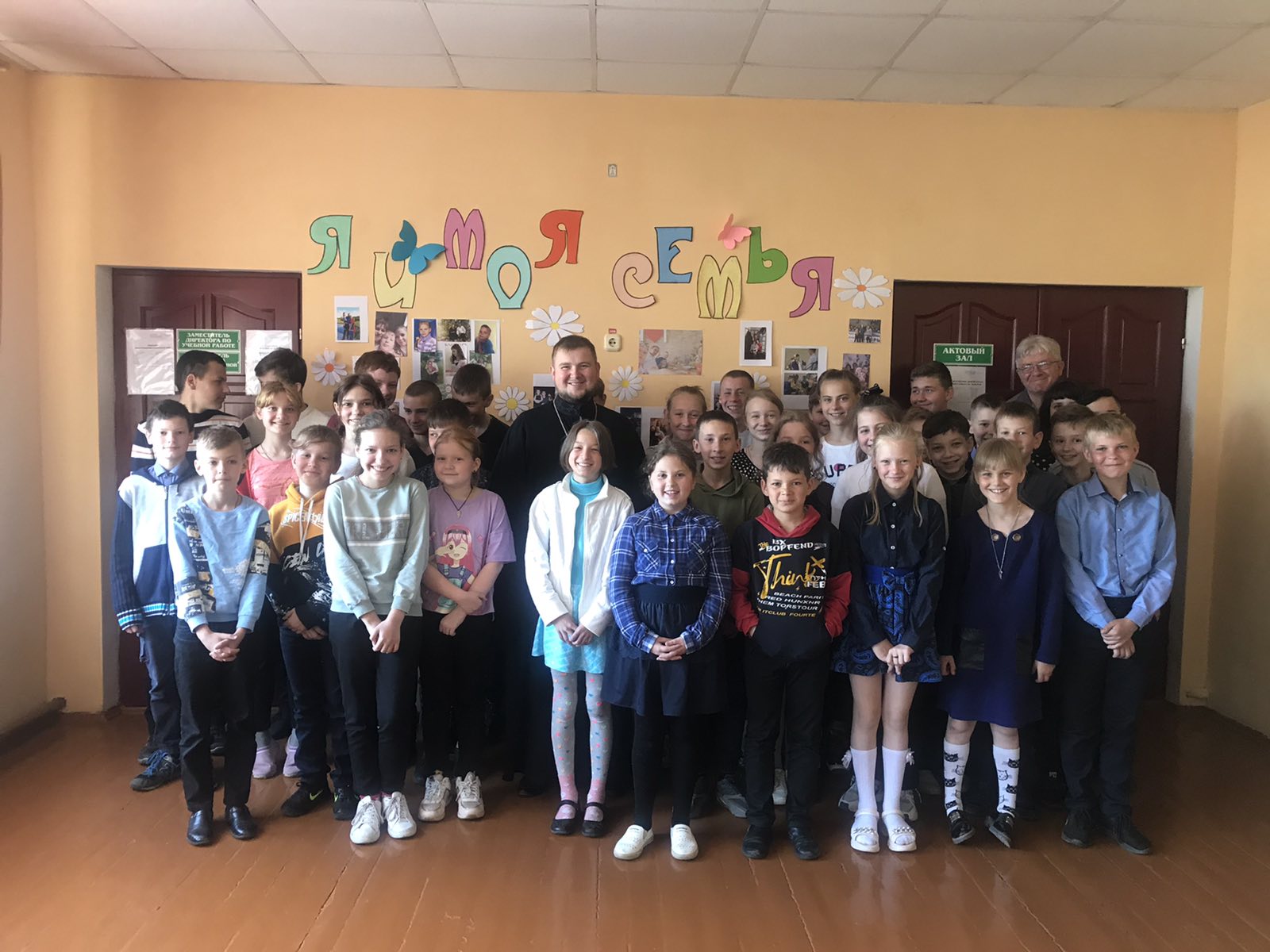 Отец Владимир встретившись с детьми показал всем приветственное обращение Патриаршего Экзарха Митрополита Вениамина. В завершении просмотра была проведена беседа с детьми в которой был сделан акцент на сохранение и умножение любви в наших семьях для того чтобы сохранить мир на нашей земле.