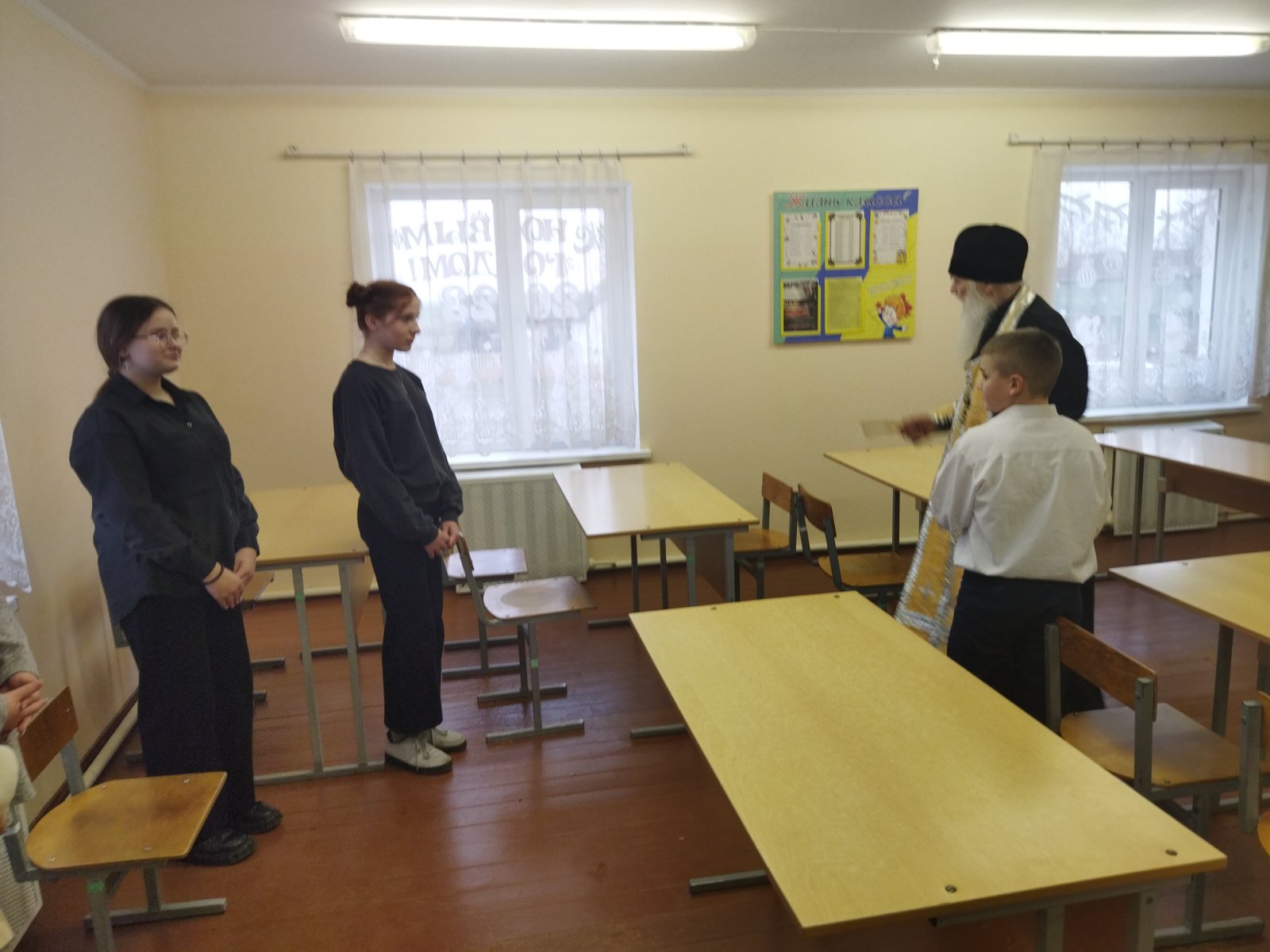 25 января 2023 года настоятель храма святителя Николая Чудотворца в д. Б. Сехновичи иеромонах Алексий (Петрусевич) совершил Чин освящения ГУО «Матиевичская базовая школа» Жабинковского района.