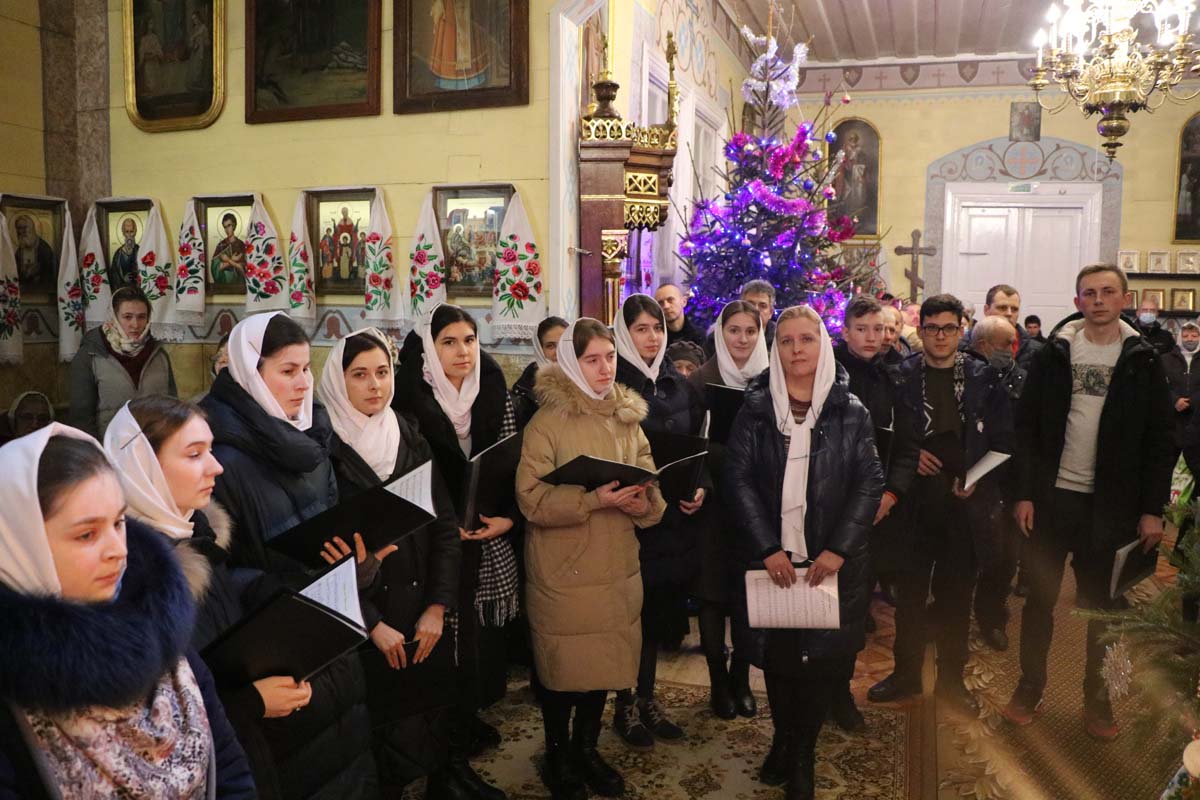 10 хоровых коллективов: архиерейский хор Свято-Духова кафедрального собора г. Минска (рег. Соболевский В.И.), хор храма Покрова Пресвятой Богородицы в г. Жабинка (рег. Петрусевич Е.В.), молодежный хор «Покров» храма Покрова Пресвятой Богородицы в г. Жабинка (рег. Марковская Н.В.), хор храма святителя Николая Чудотворца в аг. Озяты (рег. Бокач Н.В.), детский хор храма святителя Николая Чудотворца аг. Озяты (рег. Бокач Н.Е.), хор сотрудников ГУО «Озятский детский сад» (рег. Бокач Н.Е.), любительский хор д. Старое Село (рег. Козич Л.М.), хор гарнизонного собора святителя Николая Чудотворца в Брестской крепости (рег. Масло Т.В.), хор храма Успения Пресвятой Богородицы в д. Бульково (рег. Дударчук А.И.), хор храма святой великомученицы Параскевы Пятницы в д. Орехово Малоритского района прославили песнопениями пришествие в мир Христа Спасителя.
