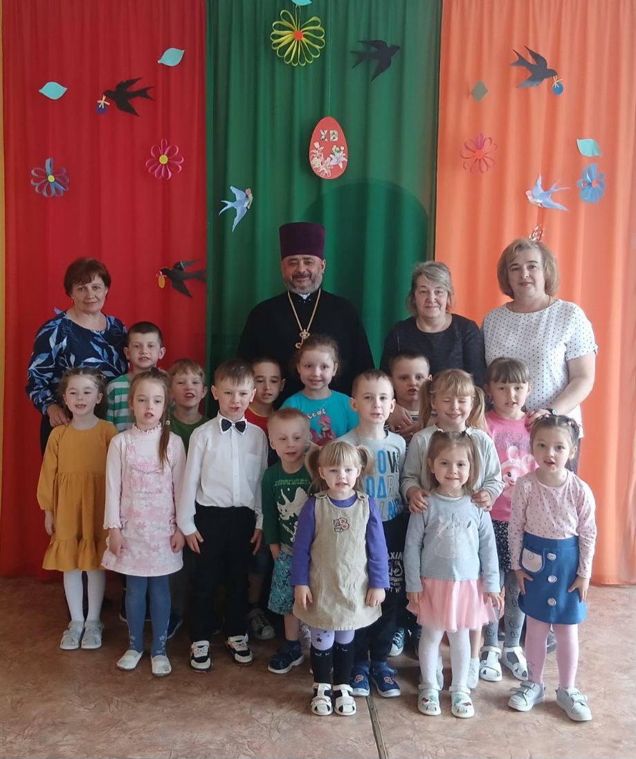Воспитанники сада под руководством заведующей Ящук Л.Н. и воспитателей подготовили праздничную программу, в ходе которой читали стихи, пели песни о Светлом Христовом Воскресении, а также представили тематическую постановку и участвовали в играх. Священник Вадим рассказал детям о смысле праздника Пасхи и Воскресении Христовом, о жертвенности, Божией любви и победе над злом, а также принял активное участие в детском праздничном мероприятии. Завершилась встреча совместным чаепитием и вручением пасхальных подарков воспитанникам и сотрудникам детского сада от прихода.