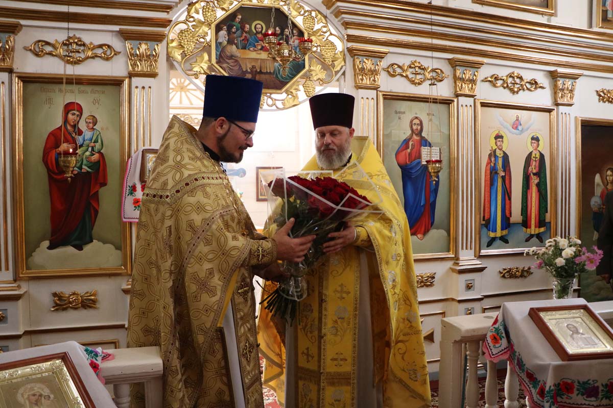 В завершение богослужения протоиерей Сергий Петрусевич обратился к молящимся со словом назидания об историческом пути Православия на белорусских землях, также от лица духовенства поздравил настоятеля храма священника Василия Ищенко с 40-летием со дня рождения, с 15-летием приятия священного сана, с 10-летием настоятельства в храме Покрова Пресвятой Богородицы в д. Орепичи и преподнес букет цветов. В дар храму благочинным была передана икона преподобного Леонтия Виленского в память.