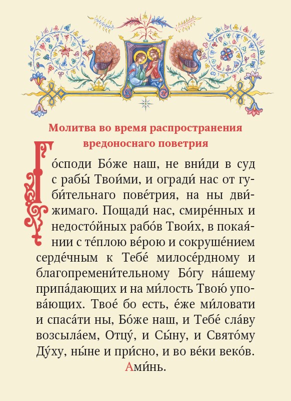 Молитва во время распространения вредоносного поветрия чтомая