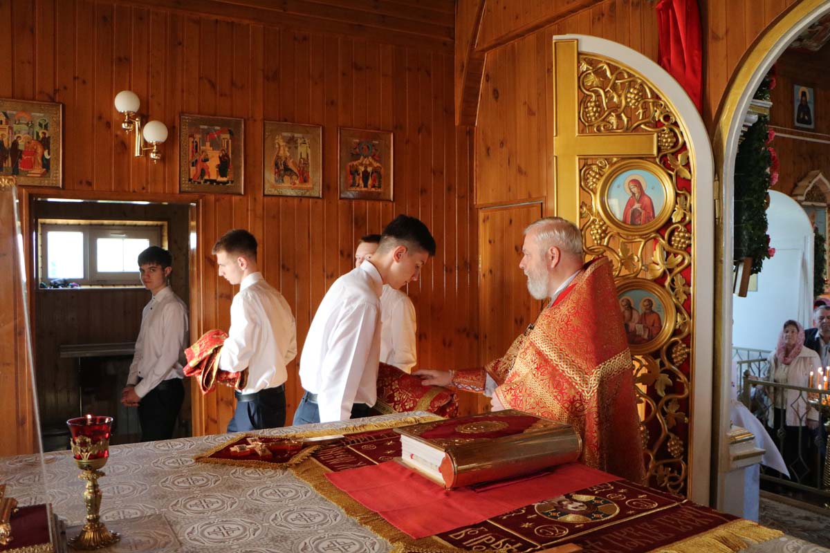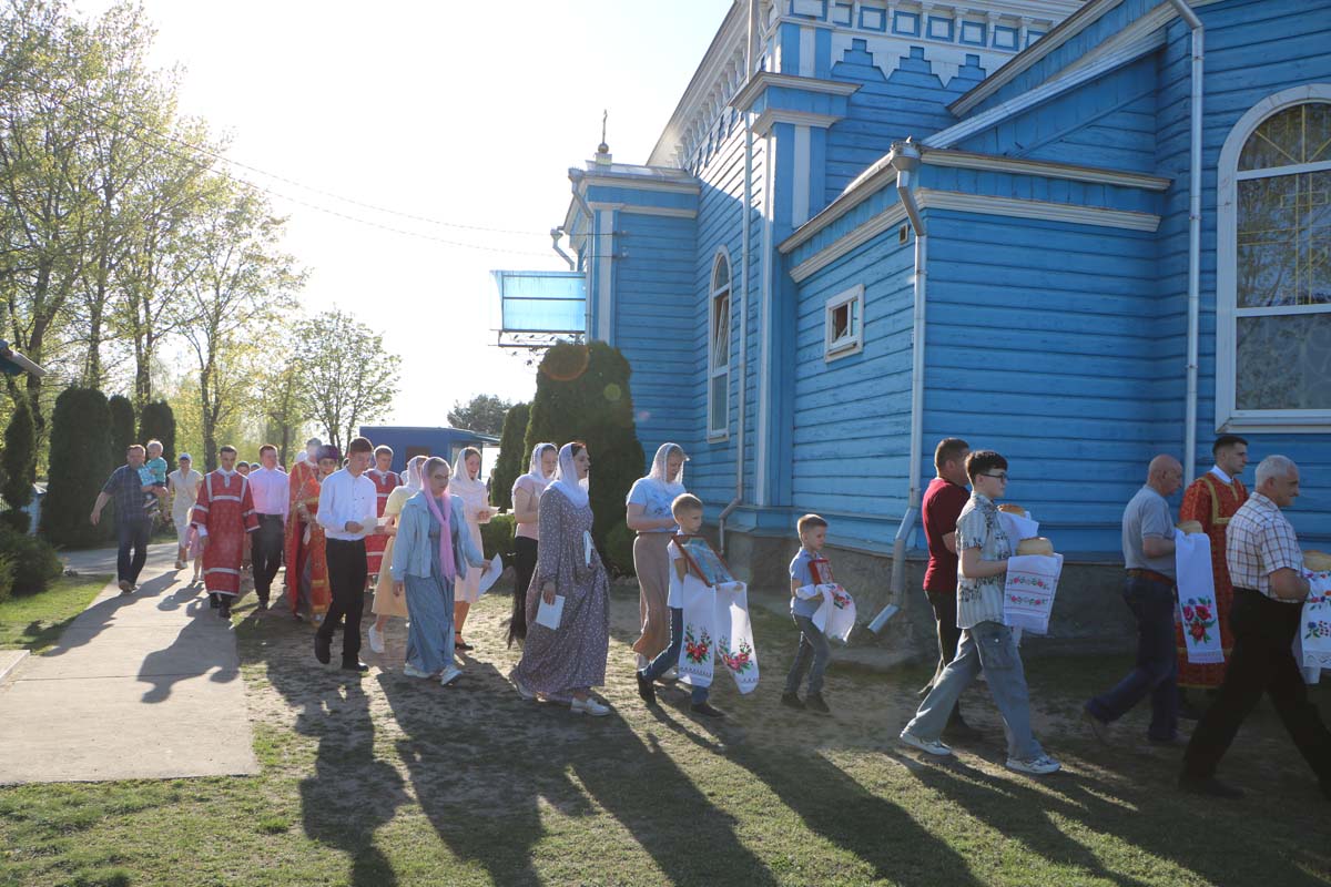 21 апреля протоиерей Сергий Петрусевич совершил Божественную литургию. После чтения Евангелия было оглашено Пасхальное послание митрополита Минского и Заславского Вениамина. После сугубой ектении была вознесена молитва о восстановлении мира. Богослужебные песнопения исполнил хор под управлением Петрусевич Е.В. После окончания богослужения был совершен пасхальный молебен и крестный ход вокруг храма.