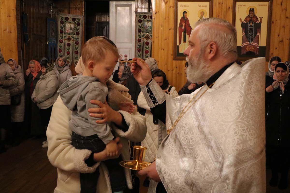 14 ноября протоиерей Сергий Петрусевич совершил Чин освящения воды, а также в сослужение настоятеля храма святителя Николая Чудотворца в д. Большие Сехновичи архимандрита Алексия (Петрусевича), настоятеля храма святого великомученика Дмитрия Солунского в д. Рогозно протоиерея Владимира Алексеева, настоятеля храма святого равноапостольного князя Владимира аг. Муховец Брестского района священника Димитрия Иванова, настоятеля храма Покрова Пресвятой Богородицы в д. Орепичи священника Василия Ищенко, настоятеля храма святого Архистратига Михаила в аг. Остромечево Брестского района священника Владимира Свидуновича, настоятеля храма Тихвинской иконы Божией Матери в г. Бресте священника Андрея Петрусевича, настоятеля храма святого равноапостольного князя Владимира в д. Чижевщина священника Александра Сытина, настоятеля храма Успения Пресвятой Богородицы в д. Бульково священника Петра Дударчука, клирика храма Покрова Пресвятой Богородицы в г. Жабинка священника Максима Волка, настоятеля храма Вознесения Господня д. Огородники священника Владимира Кондращука, настоятеля храма святого великомученика Никиты в г. Жабинка священника Михаила Колодяжного, клирика собора Воскресения Христова г. Бреста диакона Константина Киселюка совершил Божественную литургию. Во время богослужения были вознесены сугубые молитвенные прошения о восстановлении мира. На заупокойной ектении было совершено поминовение благочестивых строителей, почивших священнослужителей и прихожан храма. Богослужебные песнопения исполнил хор под управлением Петрусевич Е.В. По окончании богослужения был совершен молебен, крестный ход вокруг храма и заупокойная лития на месте упокоения строителя храма иерея Андрея Мижевского. После уставных многолетий протоиерей Сергий Петрусевич выразил слова благодарности духовенству за совместную молитву и посещение прихода, а также поздравил прихожан со 139-й годовщиной со дня освящения храма 1/14 ноября 1885 года.