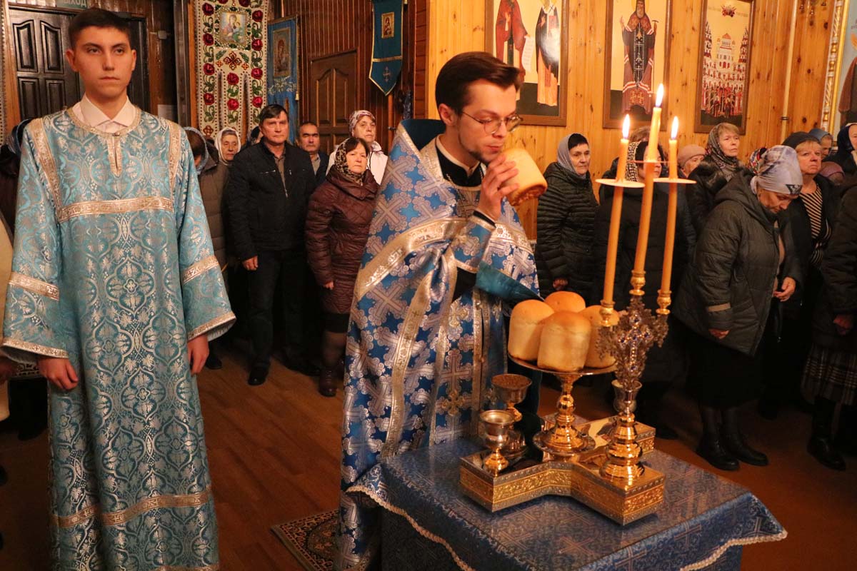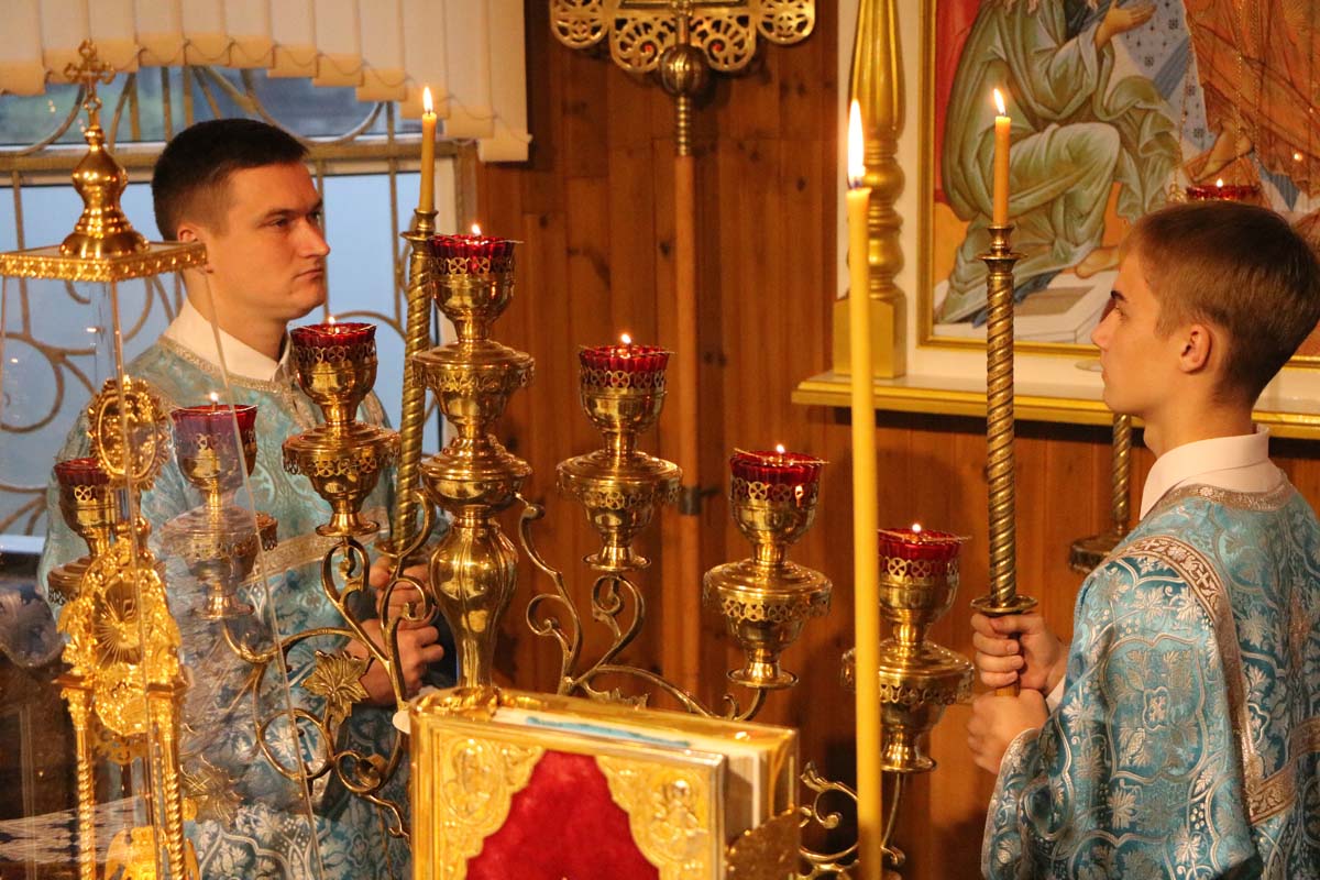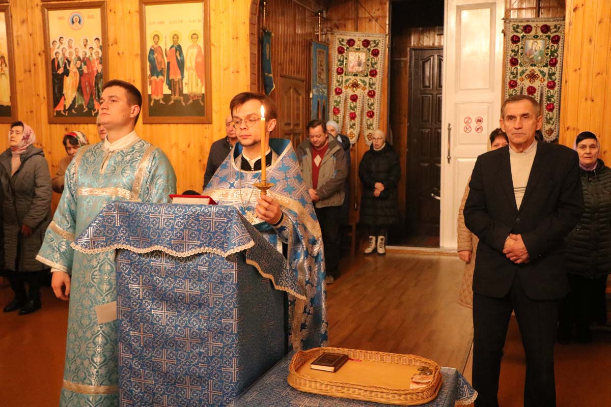 Вечером в храме была совершена вечерня с акафистом Божией Матери. Богослужебные песнопения исполнил хор под управлением Петрусевич Е.В. По окончании богослужения священник Максим Волк обратился к молящимся со словом назидания.