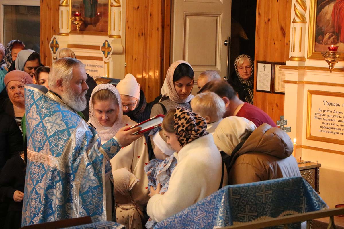 04 декабря протоиерей Сергий Петрусевич в сослужение священника Максима Волка совершил Божественную литургию. После чтения Евангелия настоятель храма обратился к молящимся с проповедью о христианском воспитании детей. После сугубой ектении была вознесена молитва о восстановлении мира. Богослужебные песнопения исполнил хор под управлением Петрусевич Е.В. По окончании Божественной литургии был совершен молебен.