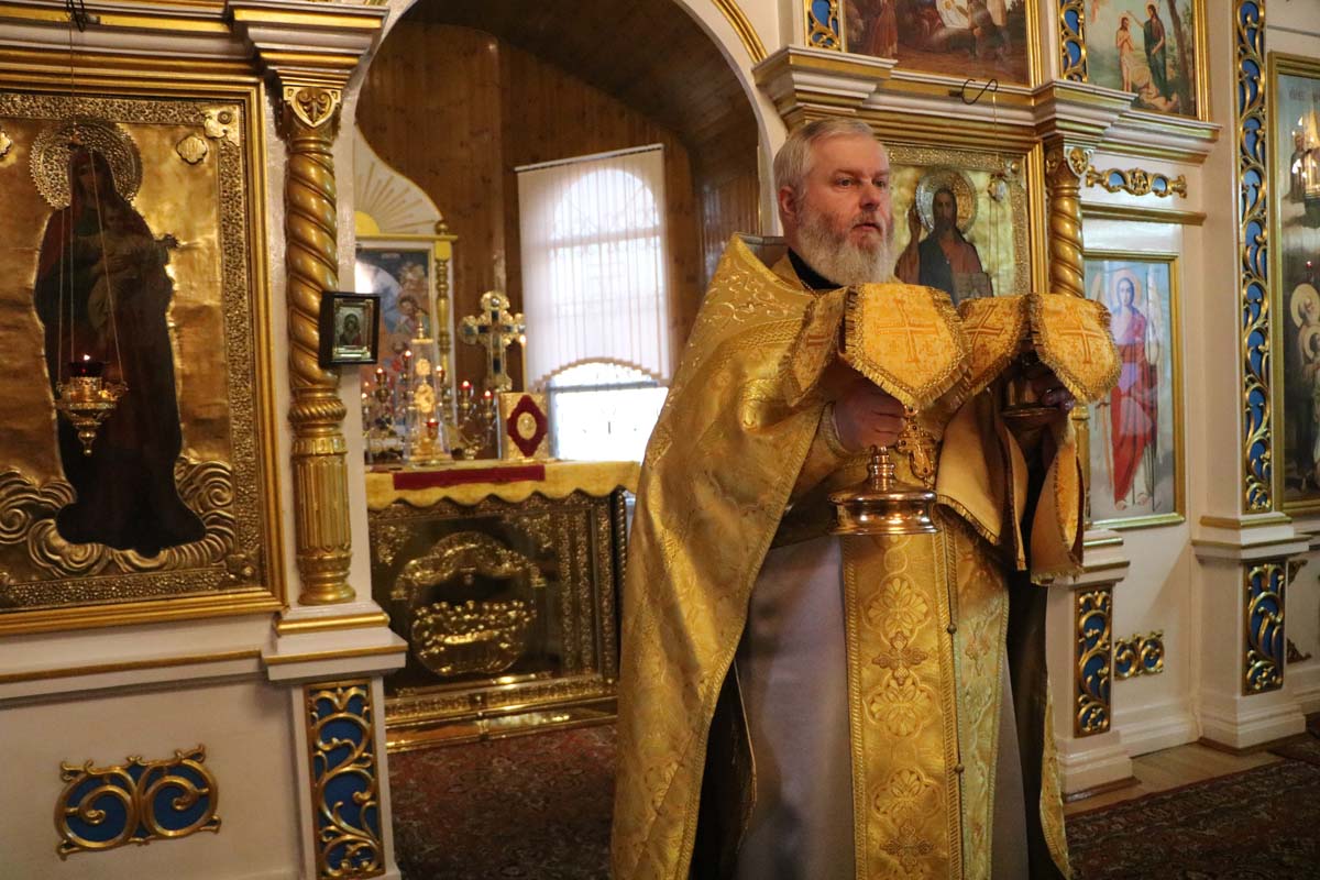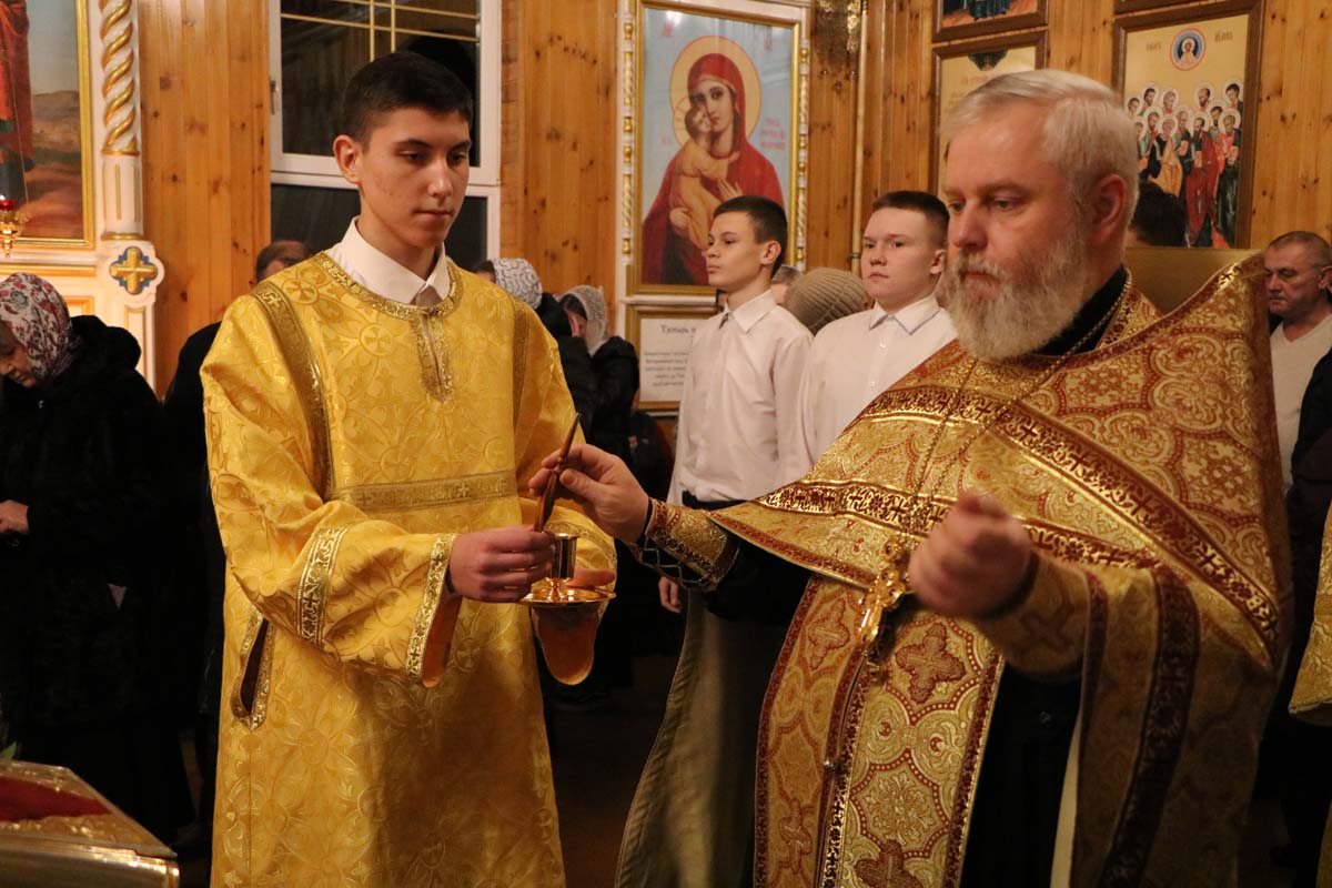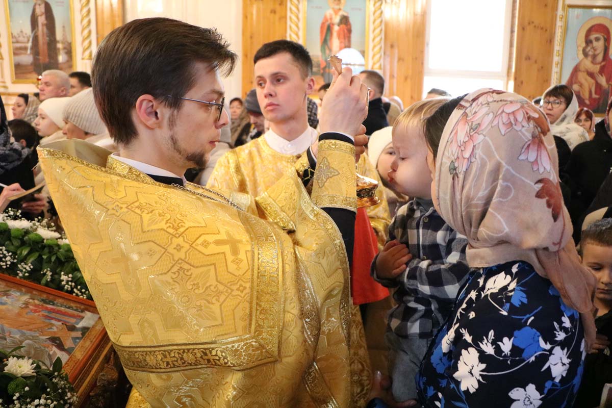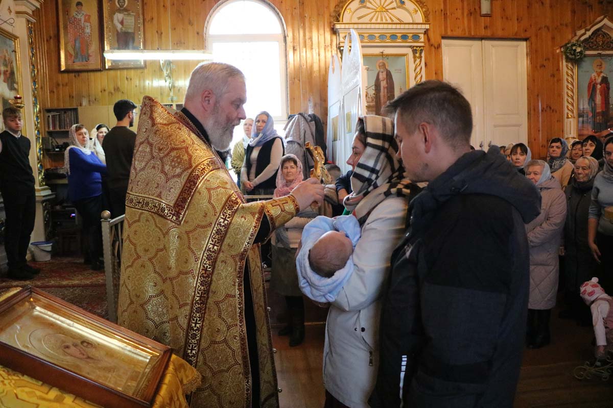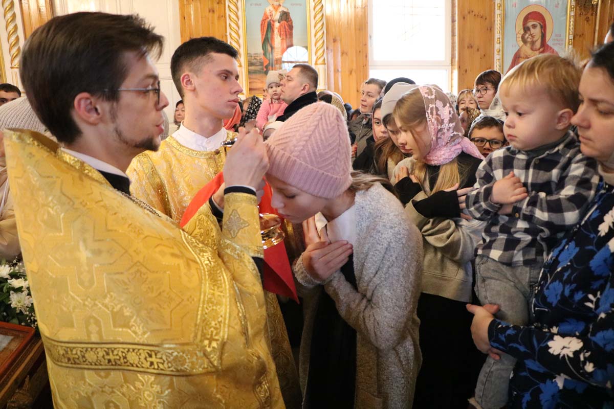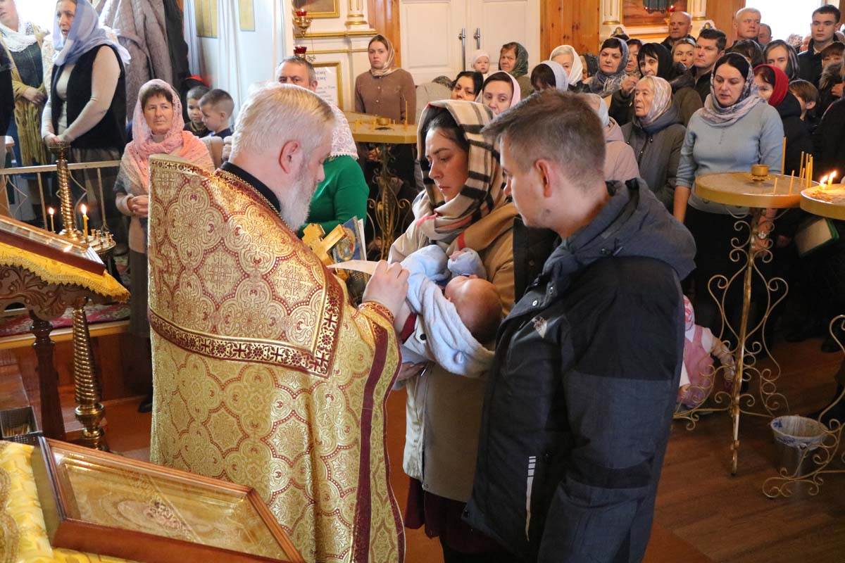 22 декабря протоиерей Сергий Петрусевич совершил Божественную литургию. После чтения Евангелия священнослужитель обратился к молящимся с проповедью об исцелении десяти прокаженных (Лк.17, 12-19). После сугубой ектении была вознесена молитва о восстановлении мира. Богослужебные песнопения исполнил хор под управлением Петрусевич Е.В. Во время пения запричастного стиха был совершен Чин воцерковления младенца. По окончании Божественной литургии был совершен молебен и панихида. В завершение богослужения настоятель храма приветствовал родителей с младенцем, над которыми в этот день совершался Чин воцерковления.