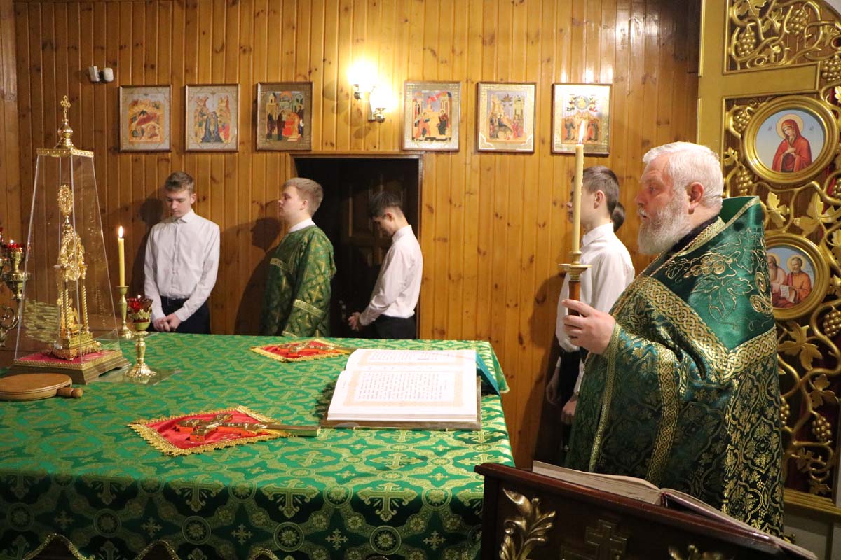 05 февраля 2025 года, в канун дня памяти блаженной Ксении Петербургской и блаженной Валентины Минской, секретарь Брестского епархиального управления, благочинный церквей Жабинковского округа, настоятель храма Покрова Пресвятой Богородицы в г. Жабинка протоиерей Сергий Петрусевич совершил полиелейное богослужение в храме Покрова Пресвятой Богородицы в г. Жабинка.