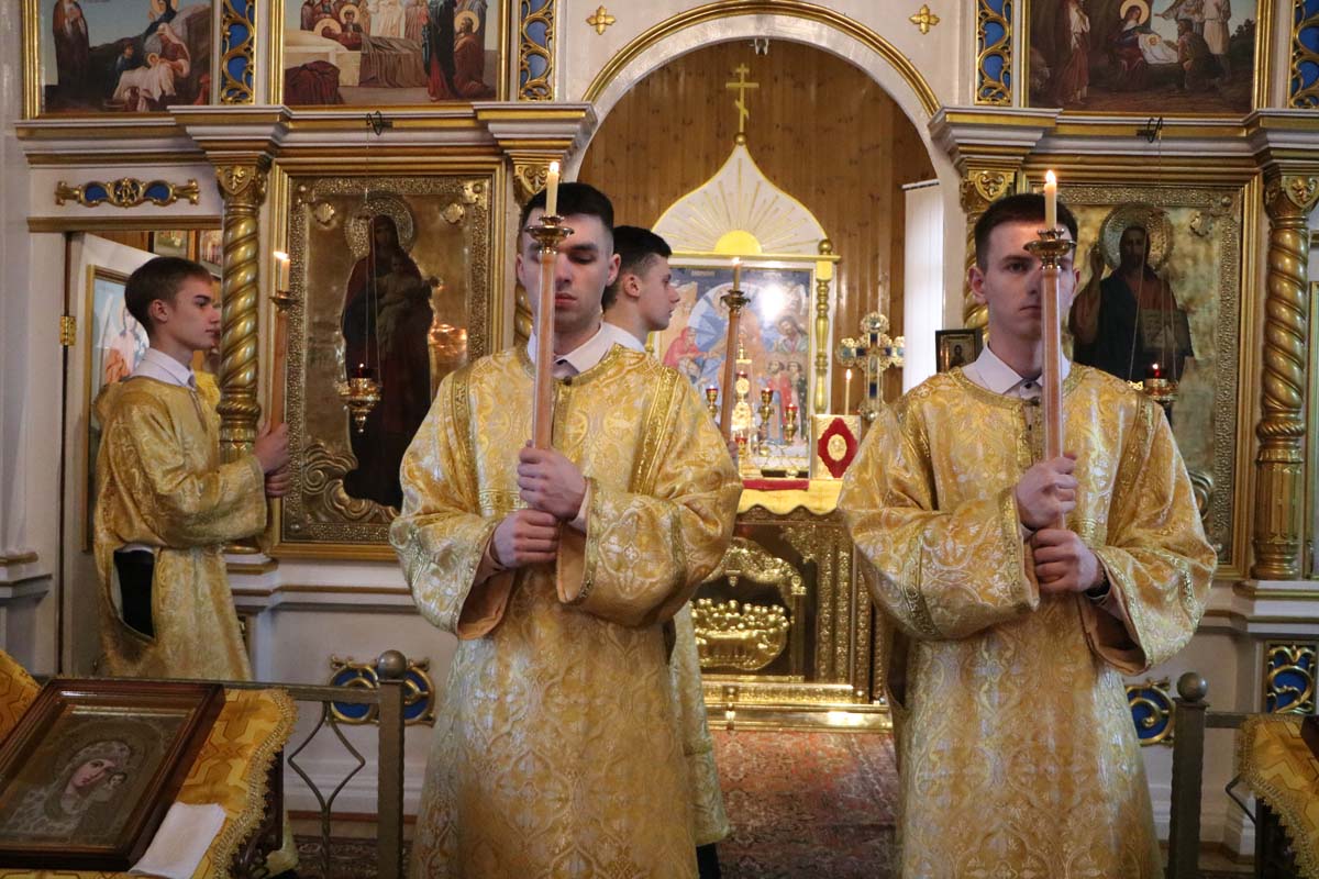 02 марта протоиерей Сергий Петрусевич совершил Божественную литургию. После чтения Евангелия священнослужитель обратился к молящимся с проповедью о богатстве временном и вечном. После сугубой ектении была вознесена молитва о восстановлении мира. Богослужебные песнопения исполнил хор под управлением Петрусевич Е.В. По окончании Божественной литургии был совершен молебен о плодоносящих (беременных) женщинах, который по традиции совершается в храме в первое воскресенье месяца, а также благодарственная молитва Господу Богу в память воссоединения белорусских униатов с Матерью-Церковью, согласно постановления Священного Синода Белорусской Православной Церкви от 3 сентября 2012 года (Журнал №169), который определил: «Принимая во внимание важность для белорусского народа исторической памяти о воссоединении униатов с Матерью-Церковью служить во всех храмах Белорусской Православной Церкви 12 февраля ст.ст. / 25 февраля н.ст. или в ближайший воскресный день благодарственный молебен Господу Богу в память о даровании духовного единства белорусскому народу».
