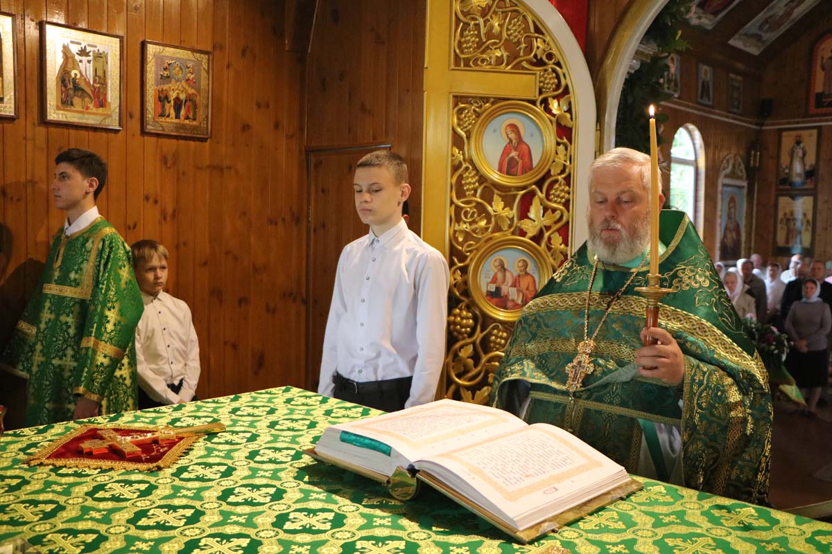 09 июня протоиерей Сергий Петрусевич совершил Божественную литургию. После чтения Евангелия священнослужитель обратился к молящимся с проповедью о дарах Святого Духа. После сугубой ектении была вознесена молитва о восстановлении мира. Богослужебные песнопения исполнил хор под управлением Петрусевич Е.В. По окончании Божественной литургии был совершен молебен Святому Духу.