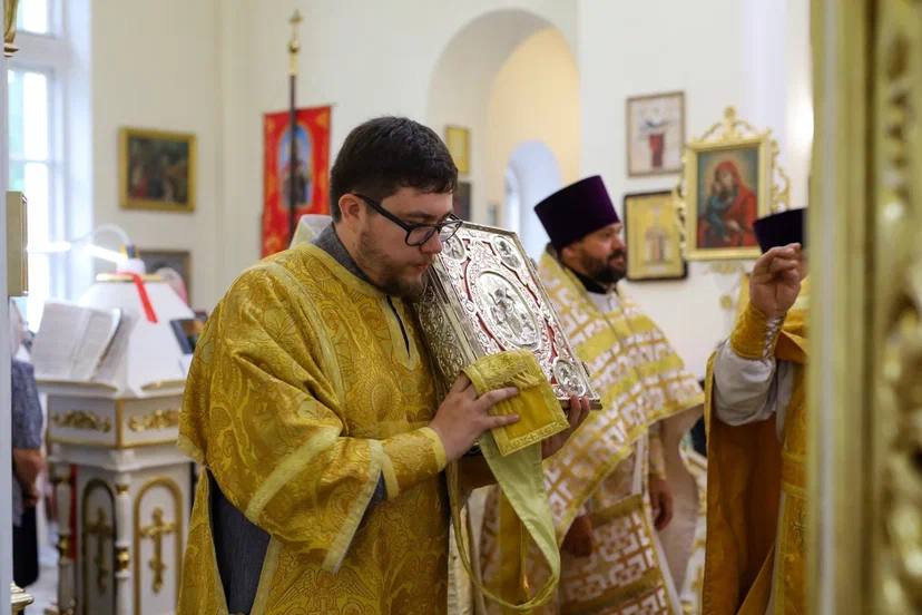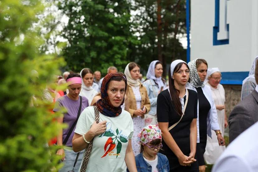 По окончании Божественной литургии был совершен крестный ход вокруг храма и молебен.