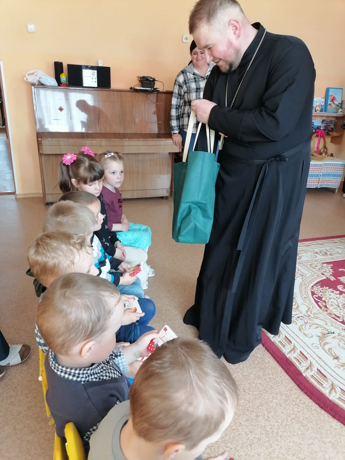 Учащиеся воскресной школы представили для маленьких зрителей и сотрудников учреждения театрализованную постановку, посвященную празднику Светлого Христова Воскресения. Священник Владимир Кондращук поздравил всех собравшихся с праздником, отметив, что Пасха — это центральное событие православного календаря. Священнослужитель подчеркнул, что радостью о Воскресшем Христе необходимо делиться с каждым, так как этот праздник является для верующих залогом вечной жизни с Творцом. В завершение встречи детям и сотрудникам сада были вручены сладкие пасхальные подарки.
