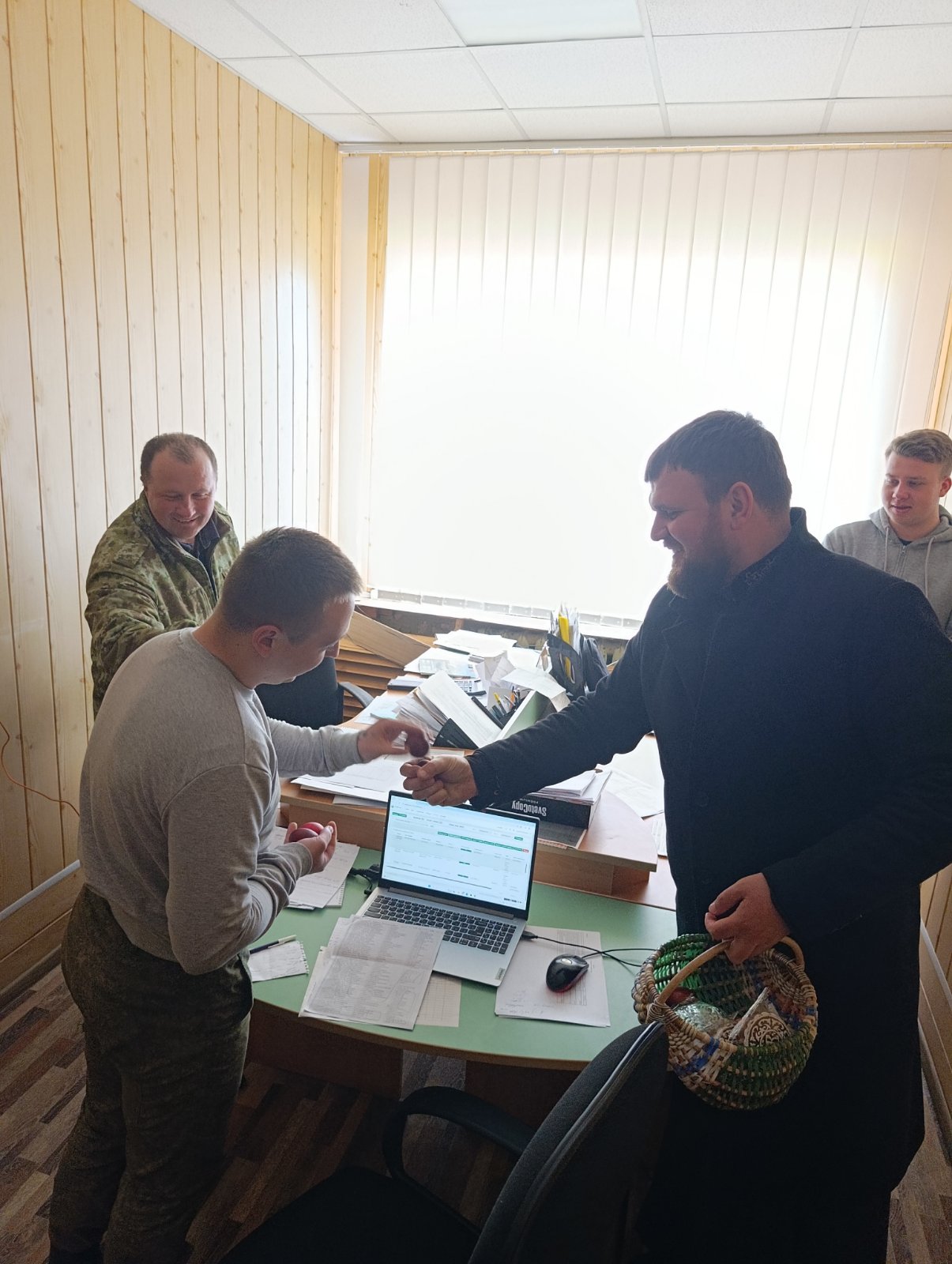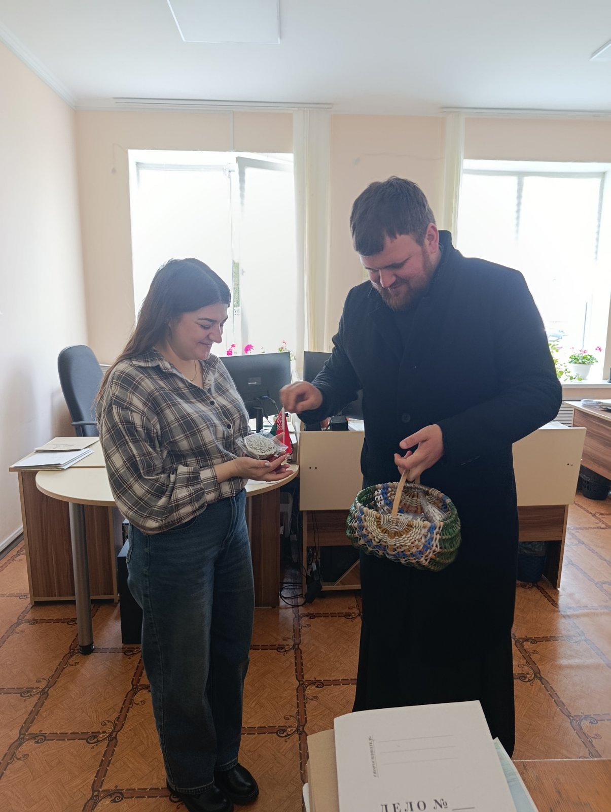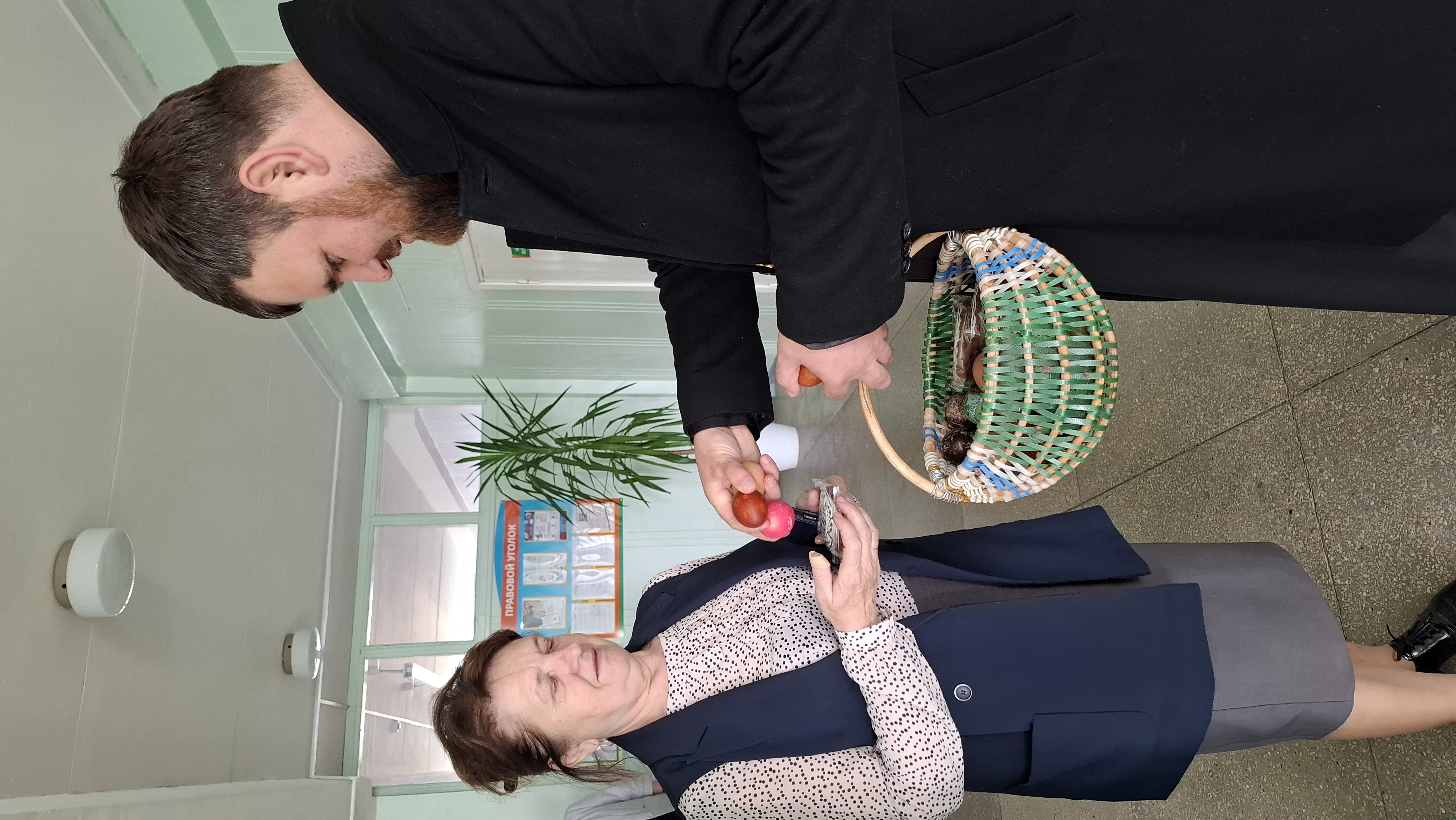 Священнослужитель пожелал всем трудящимся терпения и мудрости для добросовестного исполнения своих профессиональных обязанностей, мира и взаимопонимания в семьях, чтобы радость от Светлого Христова Воскресения сопровождала каждого до следующей Пасхи. Каждому отец Пётр вручил подарки и главный символ праздника — пасхальное яйцо.