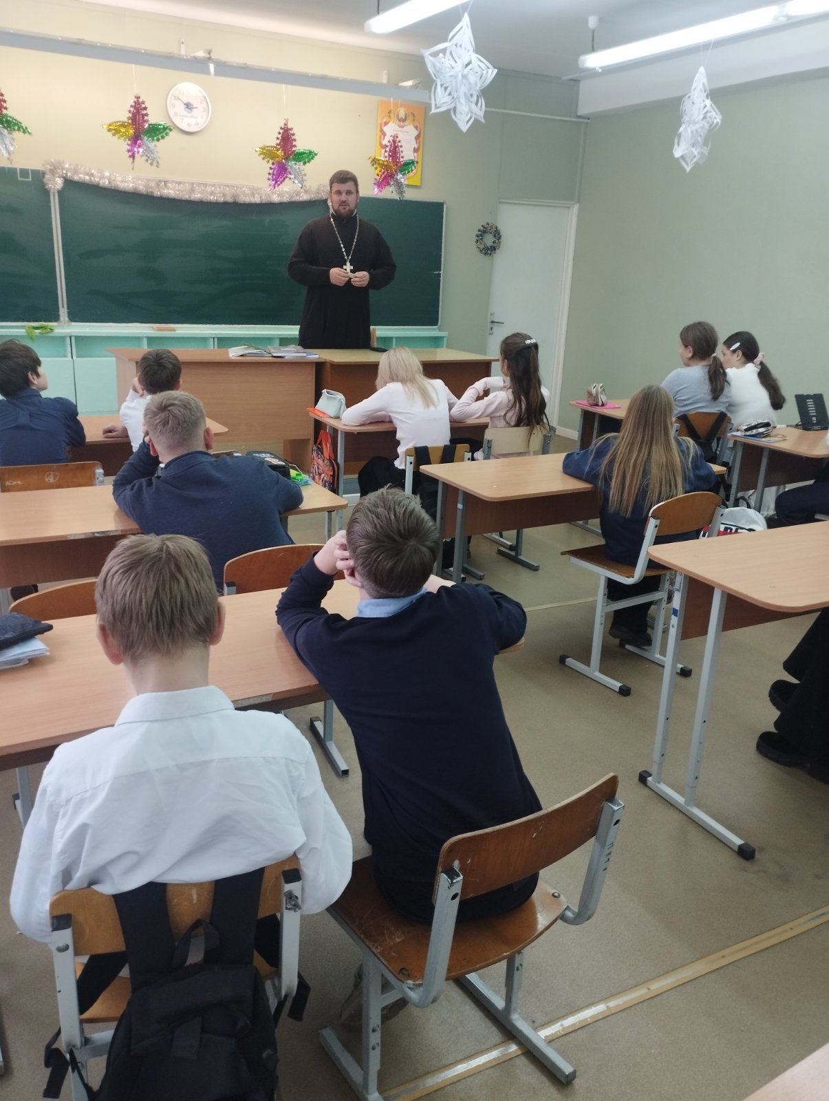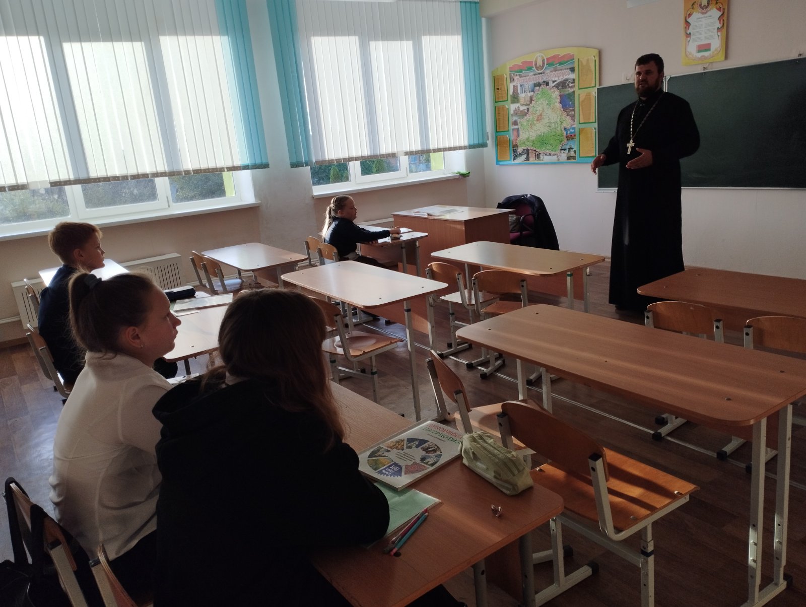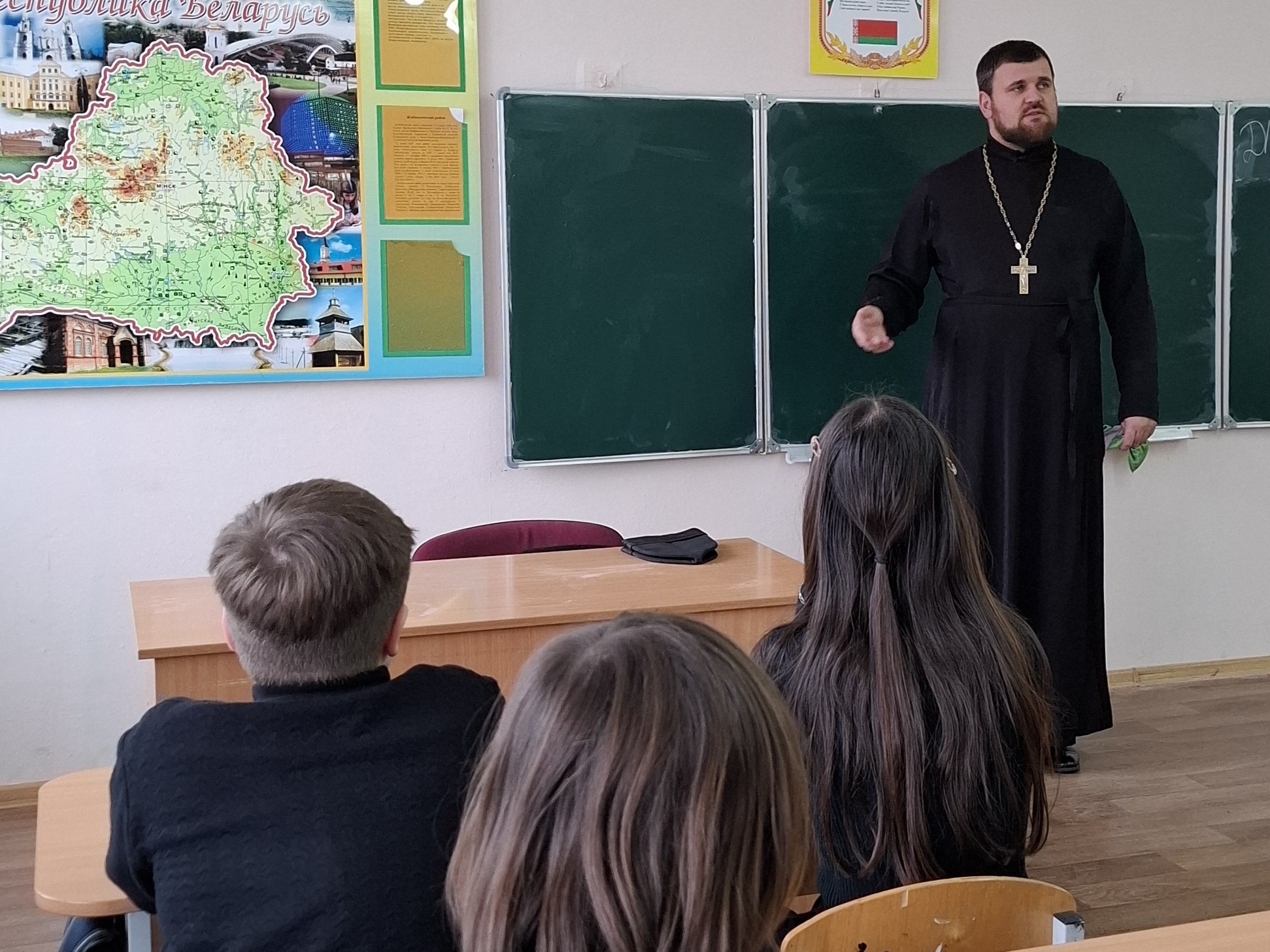 8 декабря 2025 года состоялась встреча настоятеля храма Успения Пресвятой Богородицы в д. Бульково, священника Петра Дударчука с учащимися II ступени общего базового образования (7 класс) ГУО «Ракитницкая средняя школа» Жабинковского района. В рамках беседы священнослужитель рассказал учащимся о вреде сквернословия и о смысле праздника Введения во Храм Пресвятой Богородицы.