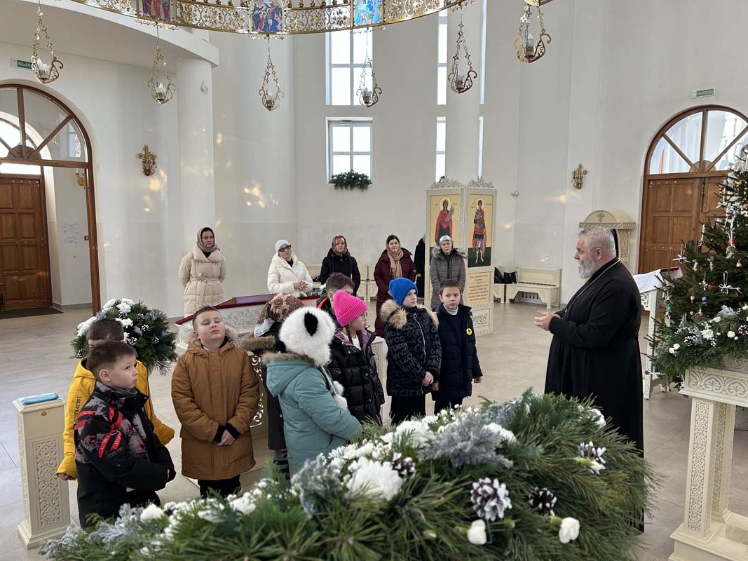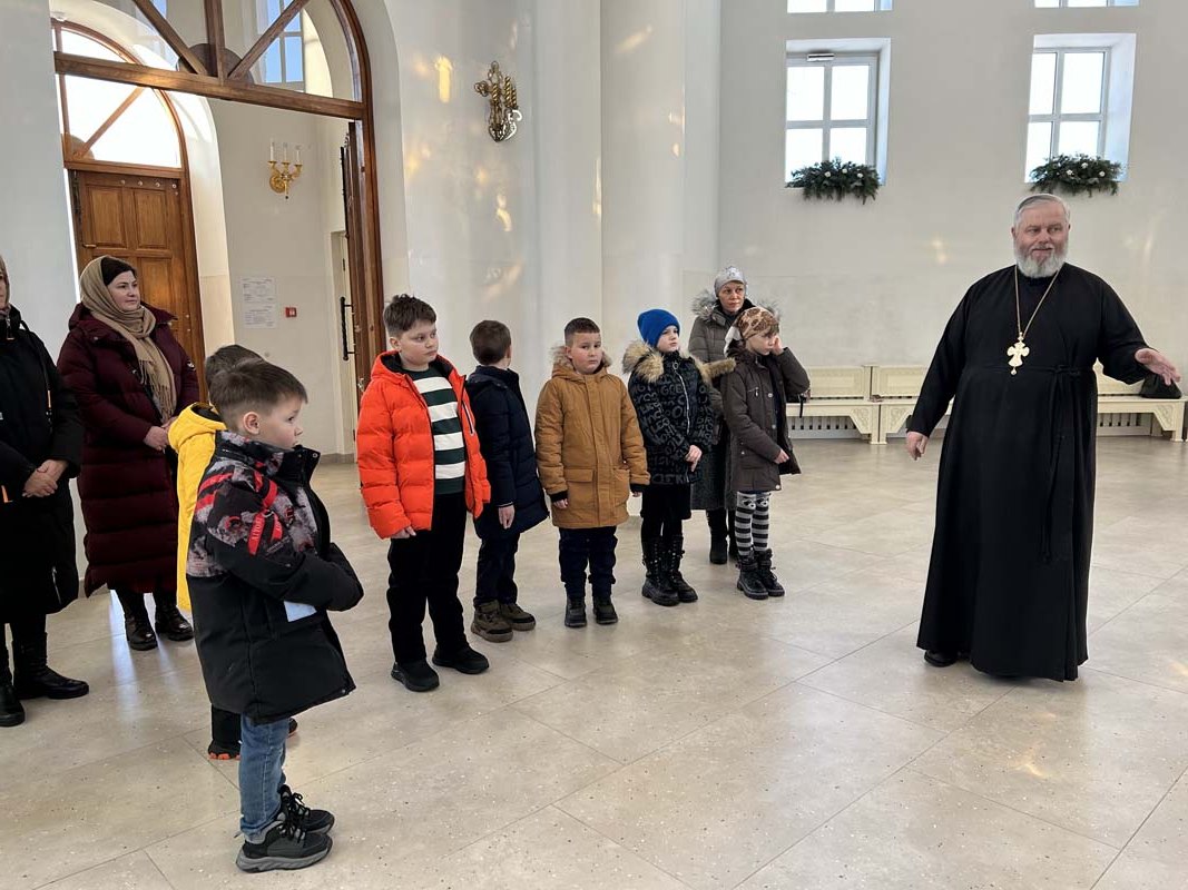17 января 2026 года настоятель храма святителя Кирилла Туровского в г. Жабинка провел практическое занятие для учащихся 2 класса воскресной школы прихода по предмету «Храмоведение». Учащиеся с педагогом Быковой О.Г. и родителями посетили храм, где познакомились внутренним устройством (делением на части), церковной утварью (предметами) и другими принадлежностями, имеющими смысл для понимания предназначения храма. В завершение занятия священнослужитель угостил учащихся сладостями, которыми была украшена рождественская ель в храме.